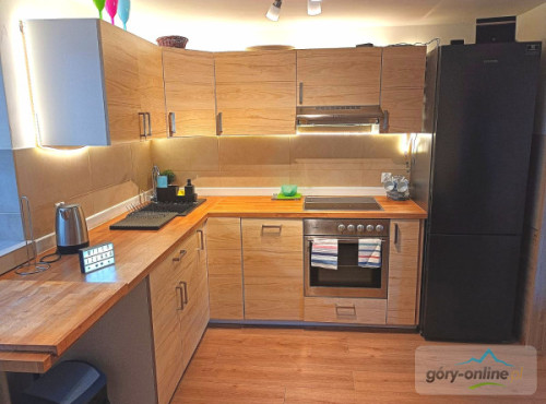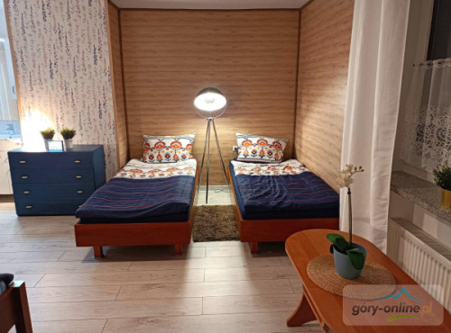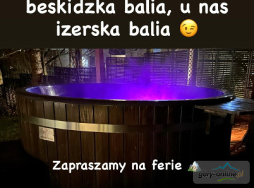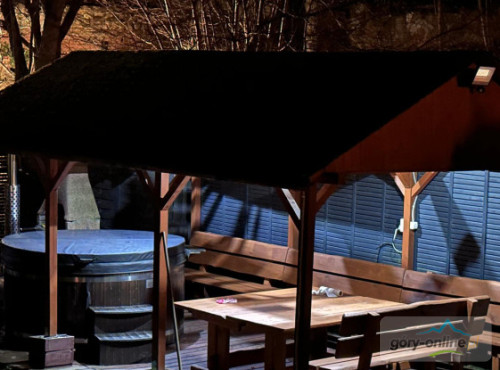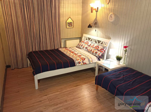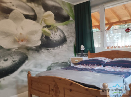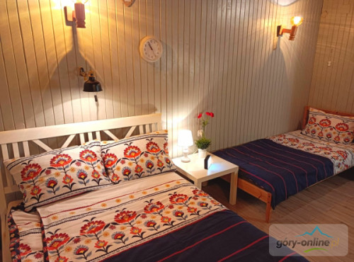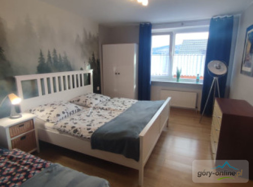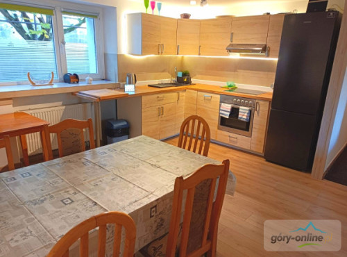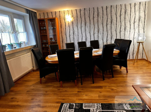 · - 3 pokoje trzyosobowe, · - 1 pokój czteroosobowy, · - 1 pokój dwuosobowy, · - salon do wspólnego spędzania wolnego czasu z wygodnymi kanapami. · - kuchnia z pełnym wyposażeniem: kuchenką ceramiczną, piekarnikiem, zmywarką, dużą lodówką, automatem do kawy, mikrofalówką, naczyniami, garnkami itd... · - salonik z bilardem i wyjściem na ogród, - gorąca beczka z jacuzzi(dod.opłata)