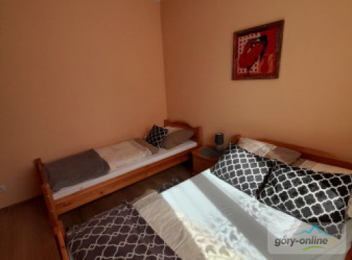 APARTAMENT dysponuje 8 miejscami noclegowymi w 3 sypialniach (3+3+2),posiada 2 łazienki,kuchnię i salon.